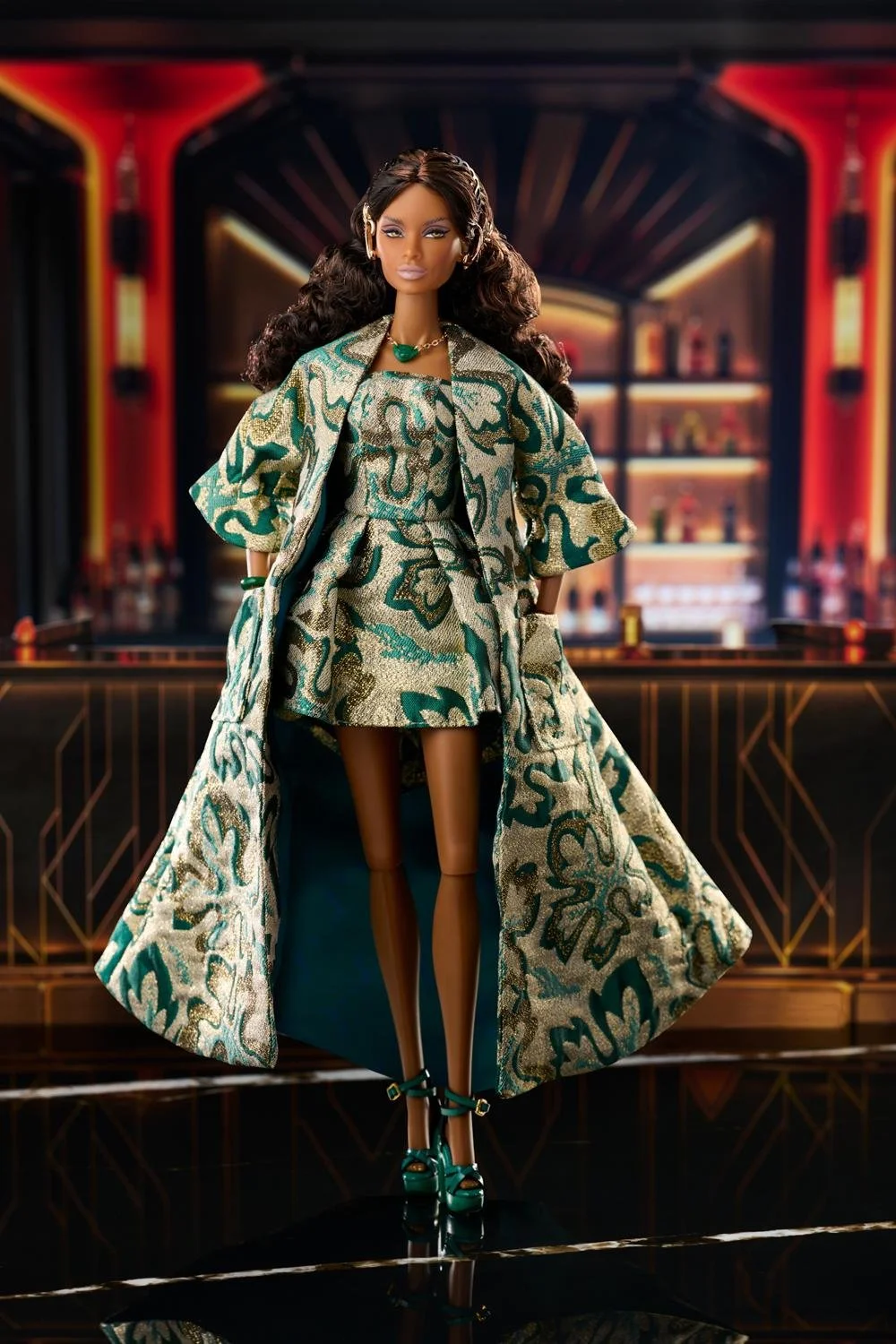 This is the doll I like best from the collection - both for her looks and her outfit. Yes, I’m a sucker for green, so this adds a lot to the doll for me, but she is also the best looking Amirah ever. Also the dots on her eyelid remind me of the alien make up of Maya, a character from Space 1999, which was a favourite sci-fi series of my childhood. Her transparent embroidered dress looks great and the fur stole complements the look very well. Not crazy about the flowers on earrings and arm bracelet but the bag and shoes are awesome. I caved in and entered the lottery.